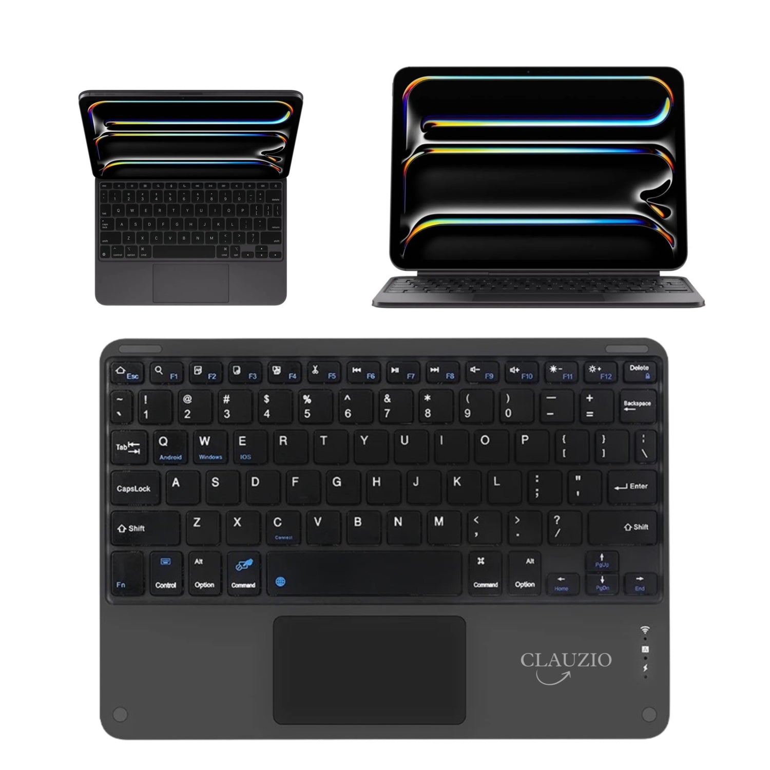 CLAUZIO Wireless Keyboard with Touchpad for IPad,MacOS,Apple,Android or Chrome os Compatible with Pc, Mac, Laptop, Smartphone, Tablet Wireless Bluetooth Multi-Device- Black
