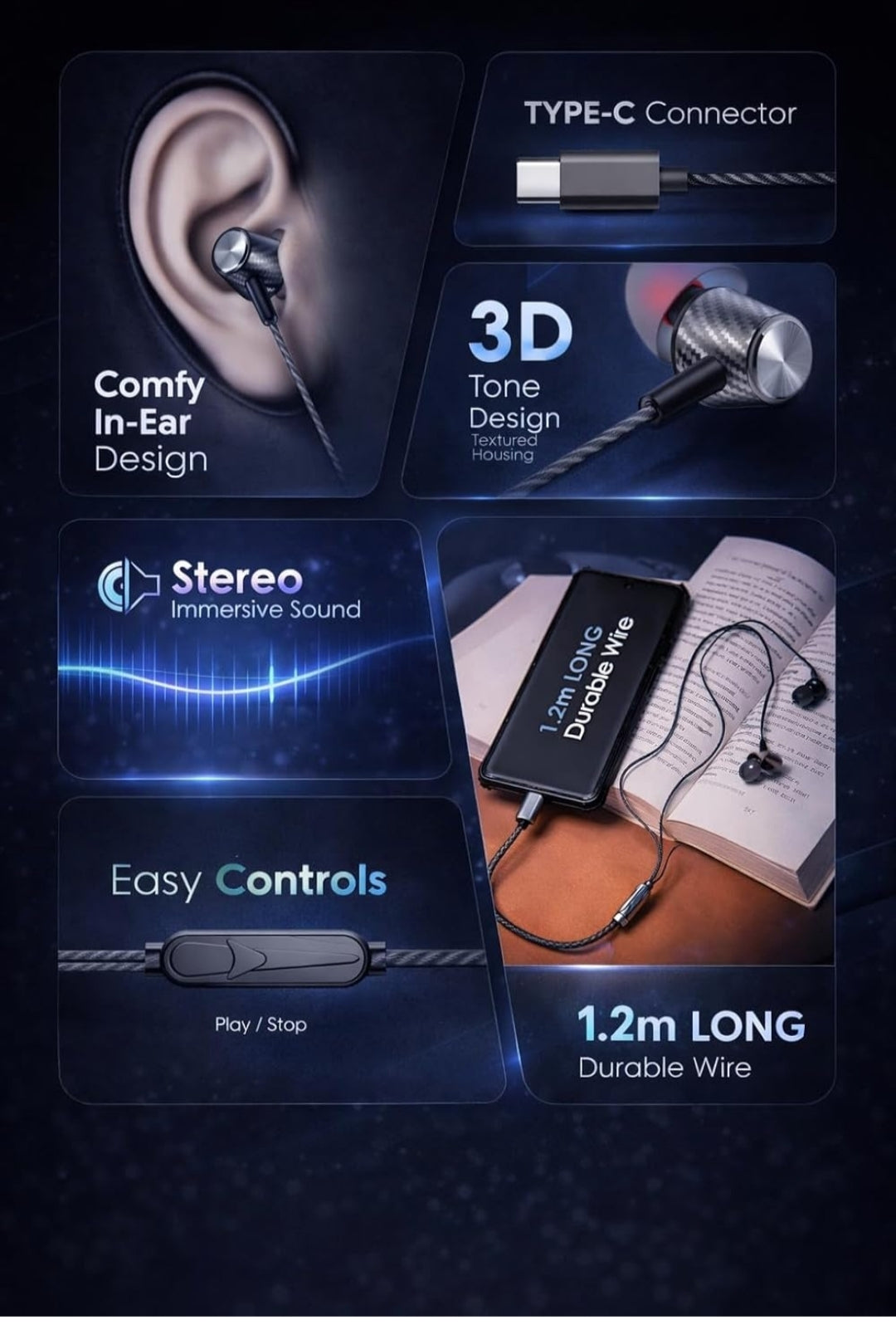MFI 100 C Wired Headphones Earphones with Type-C Jack, in-Line Microphone, in Ear, 10Mm Drivers, Signature Sound, Integrated Controls & Multi-Os Compatibility (Black) (CZ 50 Grey)
