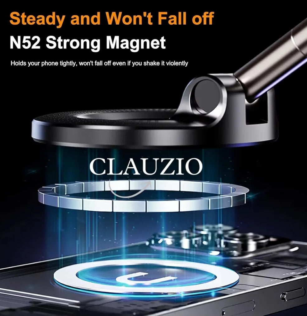 Strong Magnetic Hold for MagSafe Devices – Equipped with powerful N52-grade magnets, the CLAUZIO car phone holder ensures a secure grip on iPhone 16/15/14/13/12 series, including Pro, Pro Max, and Mini models, and MagSafe-compatible Android phones.